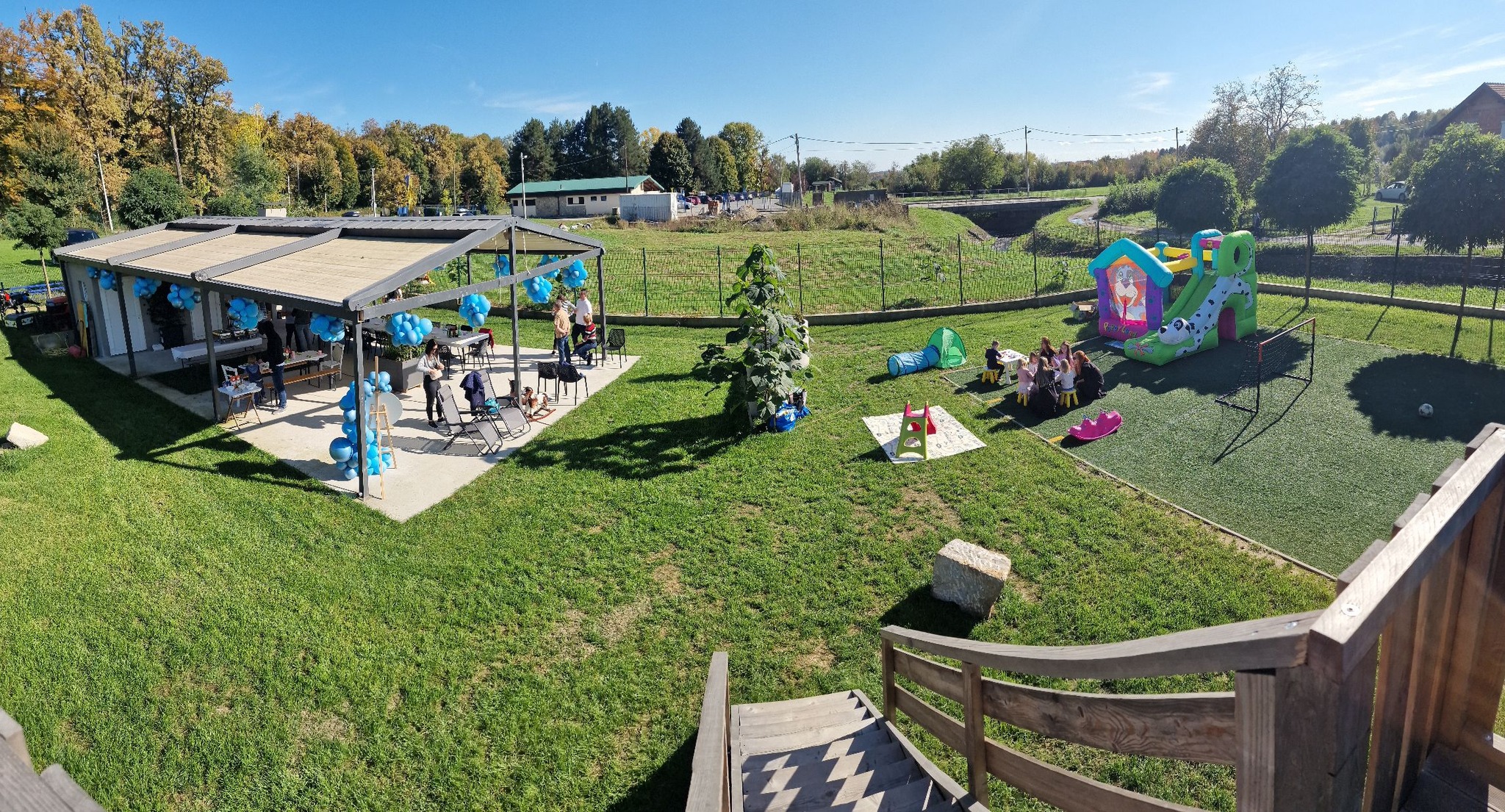 Mjesto za zabavu, odmor i druženje, u zelenoj oazi grada Zagreba. Na 2000m2 nalazi se pergola od 150m2 sa sanitarni čvorom, kupaonicom i otvorenom kuhinjom sa velikom pečenjarom za roštilje i peke. Tu je veliki stol za jelo od 6 metara za 30ak ljudi, šank za ekipu koja voli stajati uz roštilj, i kutak za malu djecu Izvan pergole imamo igralište s umjetnom travom za različite sportove, kućicu na drvetu s terasom s koje se pruža pogled na cijelo imanje.