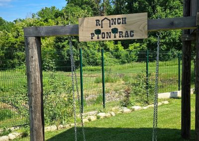 Izvan pergole imamo igralište s umjetnom travom za različite sportove, kućicu na drvetu s terasom s koje se pruža pogled na cijelo imanje. Oko cijelog imanja je ograda visine 2.5 metara, da nema brige za djecu i da imate vlastitu privatnost.